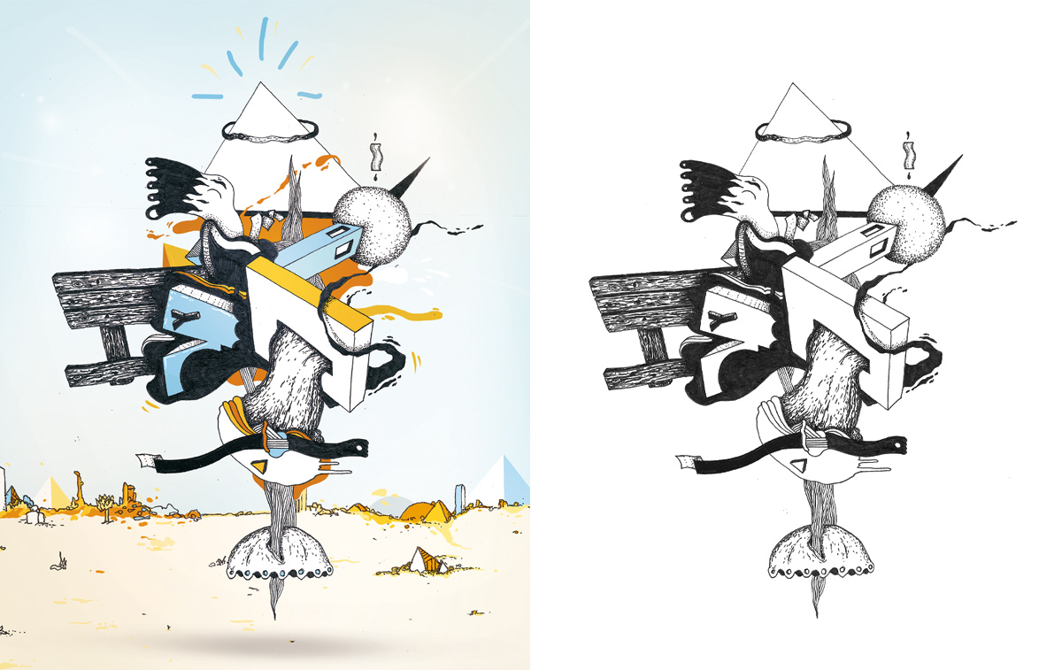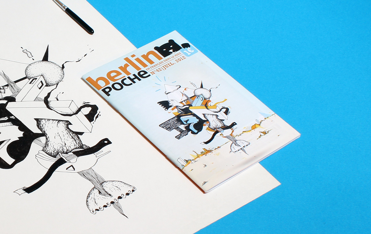 Réalisation d’une illustration pour la couverture du mensuel francophone Berlinois, Berlin poche. N°42, Juillet 2012.