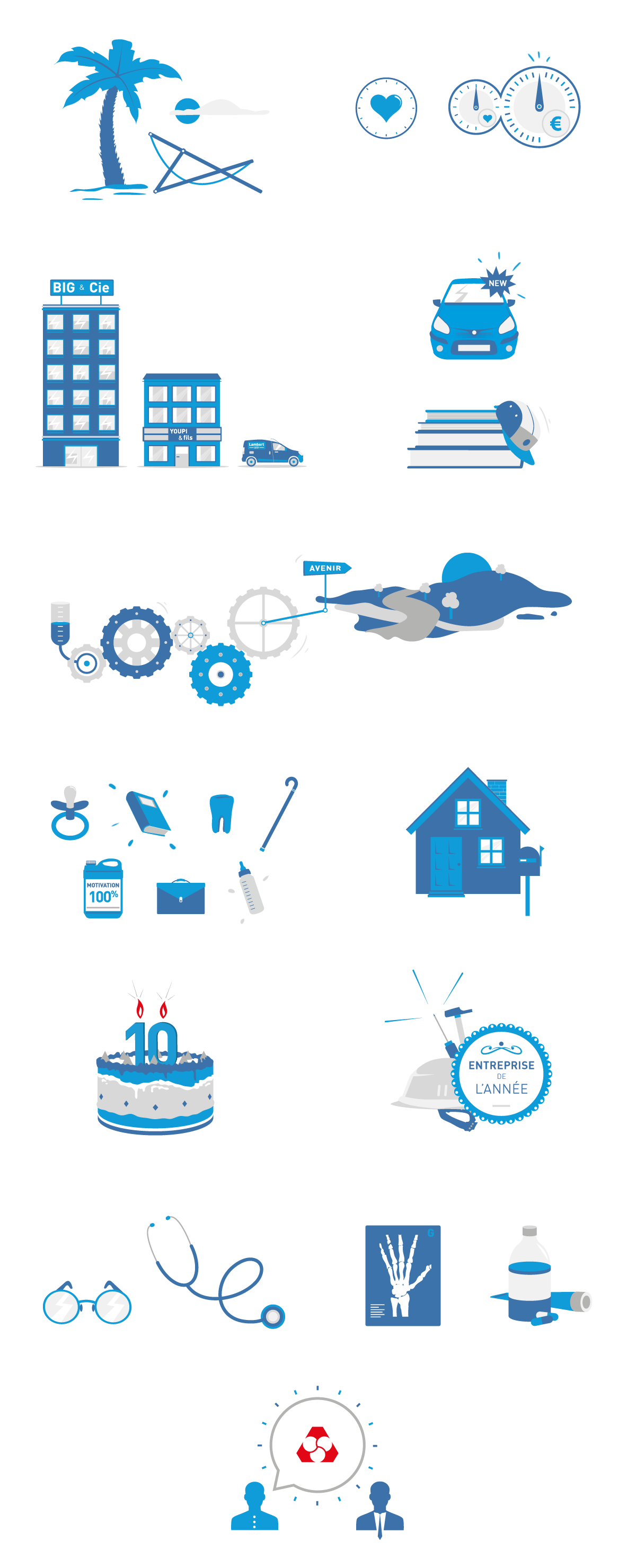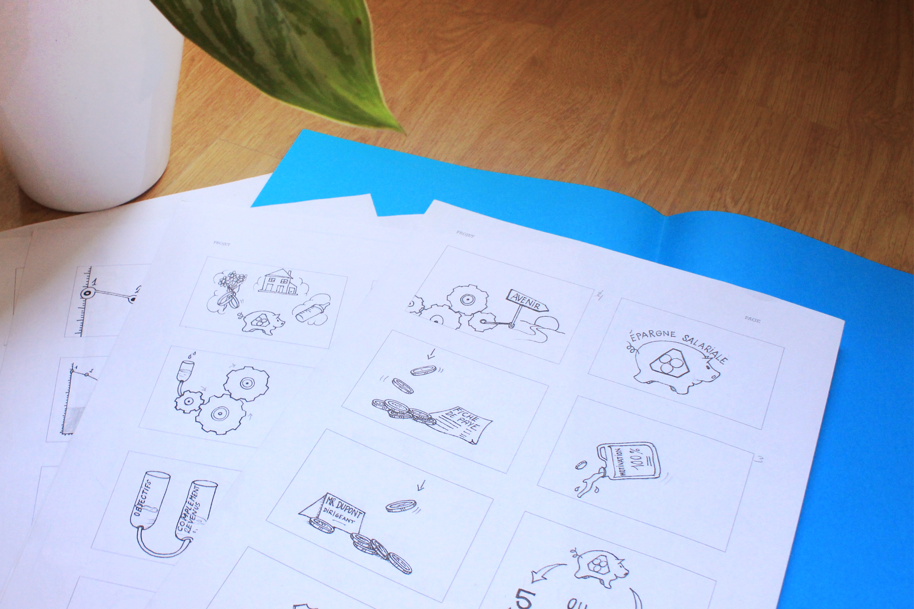 Conception de vidéos illustrant les produits et services du Crédit Mutuel. Réalisation des storyboards, et des illustrations.