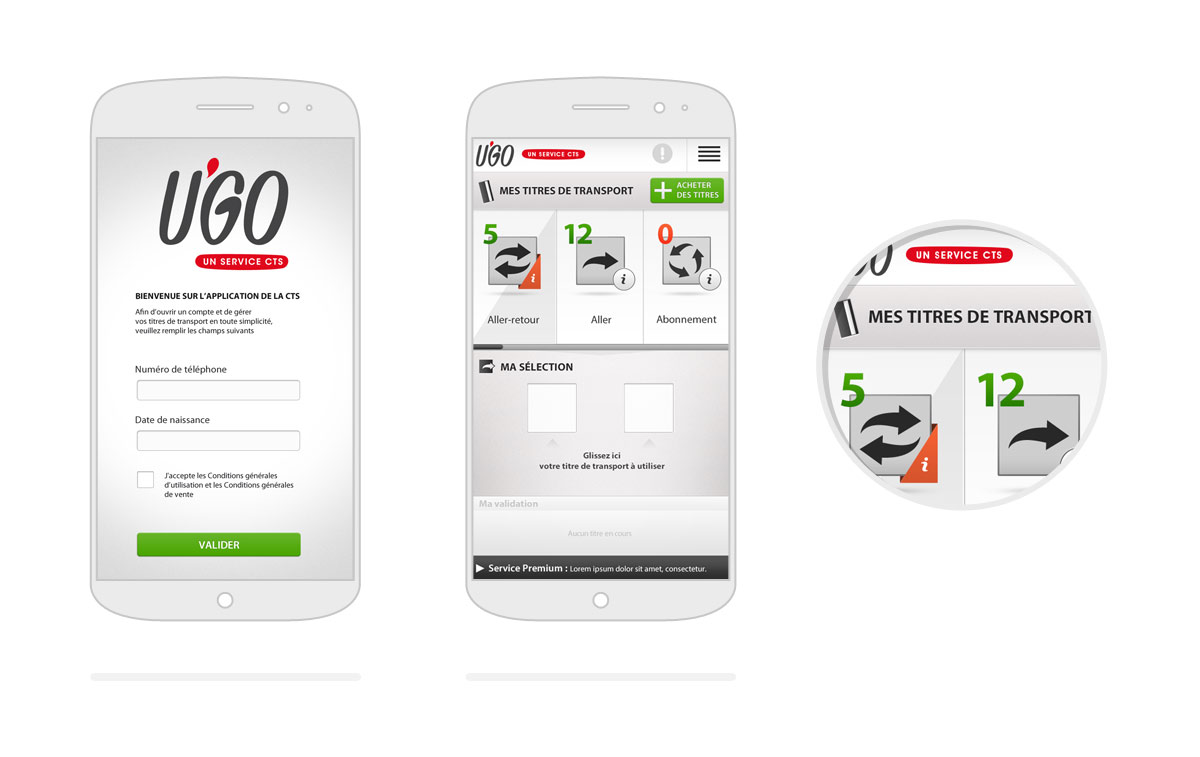 Identité et design de l'application U'GO, le service mobile de la compagnie de transport de la ville de Strasbourg.